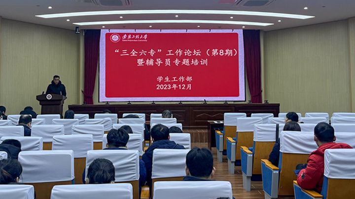 本网讯12月26日,学校在A座104会议室举行“三全六专”工作论坛(第8期)暨辅导员专题培训会。校党委常委、副校长郑健,各学院党委副书记、全体辅导员、学工部工作人员参加。活动由学工部部长黄炜主持。