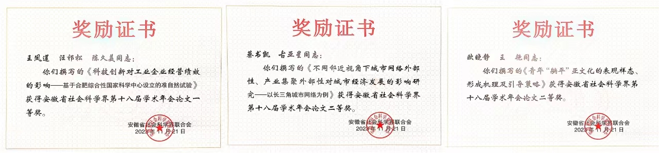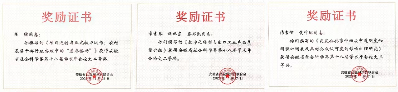 会议发布了安徽省社科界第十八届(2023)学术年会获奖论文名单,我校共计获奖6项,其中一等奖1篇,二等奖4篇,三等奖1篇,创近几年新高。