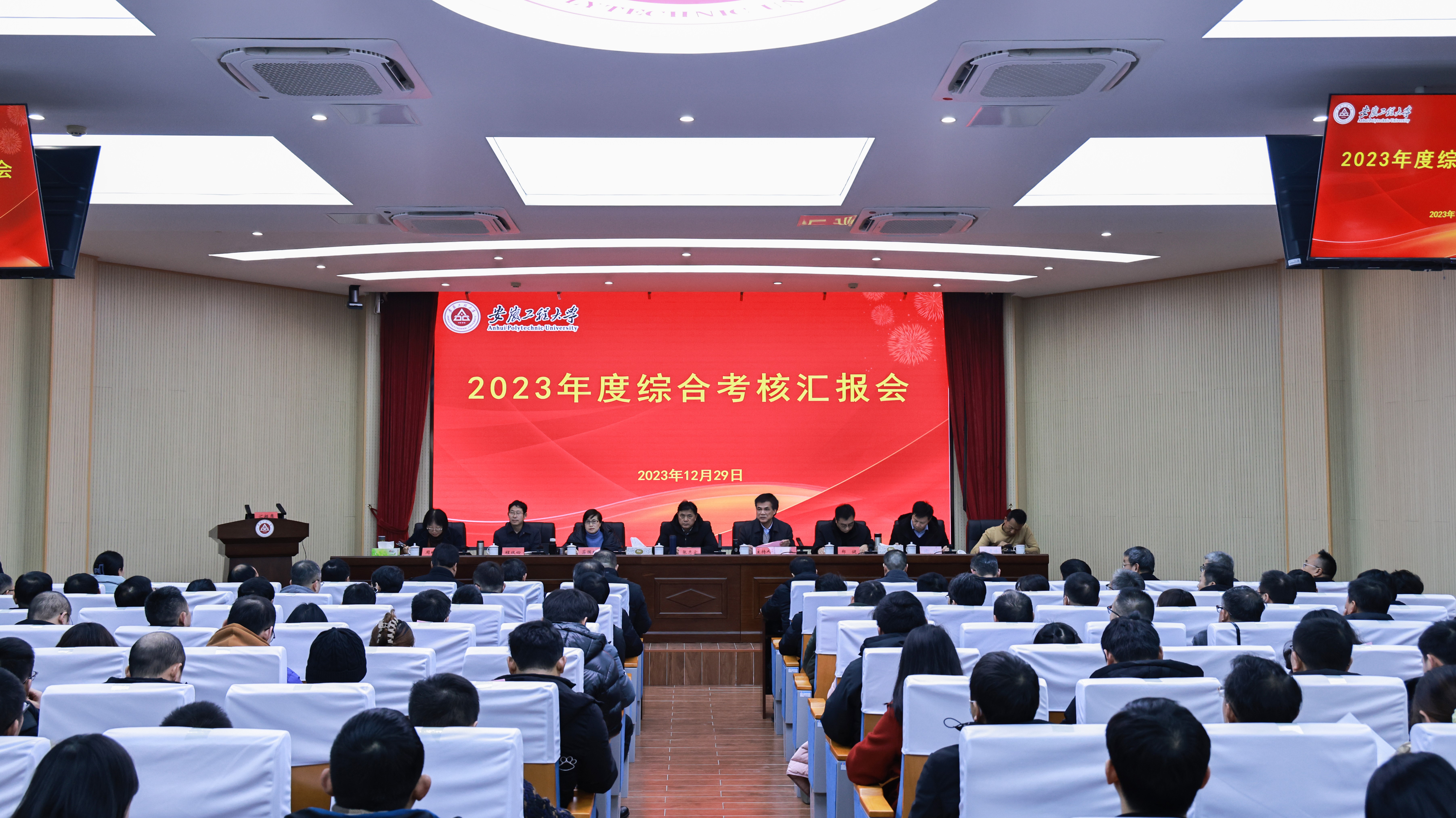 本网讯12月29日,学校在A座104会议室召开2023年度综合考核汇报会。汇报会分上下午两个阶段进行,分别由校党委书记张志宏和校党委副书记、校长卢平主持。校领导苏国红、郑健、程双四、凤权、周虹屏、高彦峰出席会议。各学院、各部门主要负责人,高层次人才、新进博士教师、教代会执委会委员、学术委员会委员、工会委员会委员和党支部书记等教职工代表参加会议。