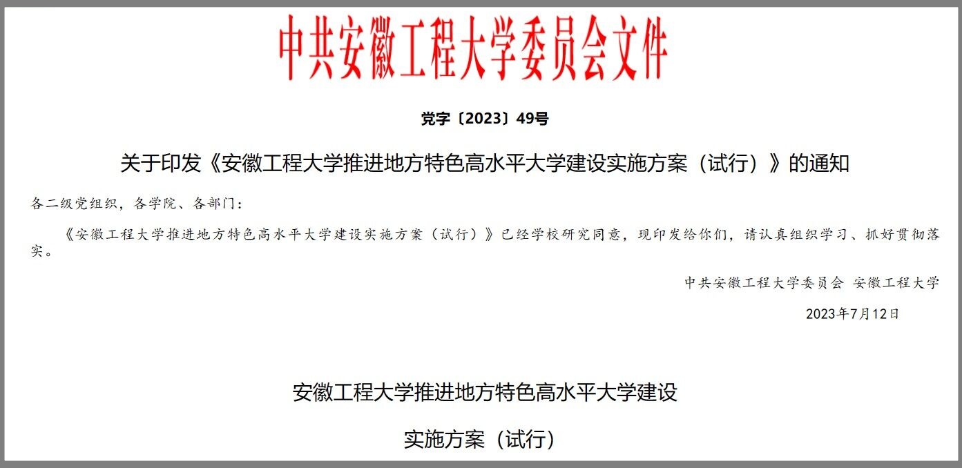 6.省厅领导来校调研指导,助力学校驶入“快车道”。省委常委、副省长张红文来校调研,他指出学校学科布局鲜明,突出工科特色,对标产业需求,产教融合紧密,展现出昂扬向上的精神状态。省政协副主席郑宏一行围绕“推进产教深度融合,服务新兴产业发展”主题来校调研。十三届全国人大常委会委员、安徽省十三届人大常委会副主任谢广祥来校调研高等教育工作并召开座谈会,充分肯定学校在产教融合方面的鲜明特色与亮点。省委教育工委书记钱桂仑来校考察调研,对学校在党建与发展上取得的成绩给予高度肯定。省科技厅厅长罗平来校调研,对学校近年来取得的科技创新成效表示肯定。省委组织部副部长、省委编办主任郭本纯,省总工会、团省委、省社科联等相关单位领导先后来校调研指导。