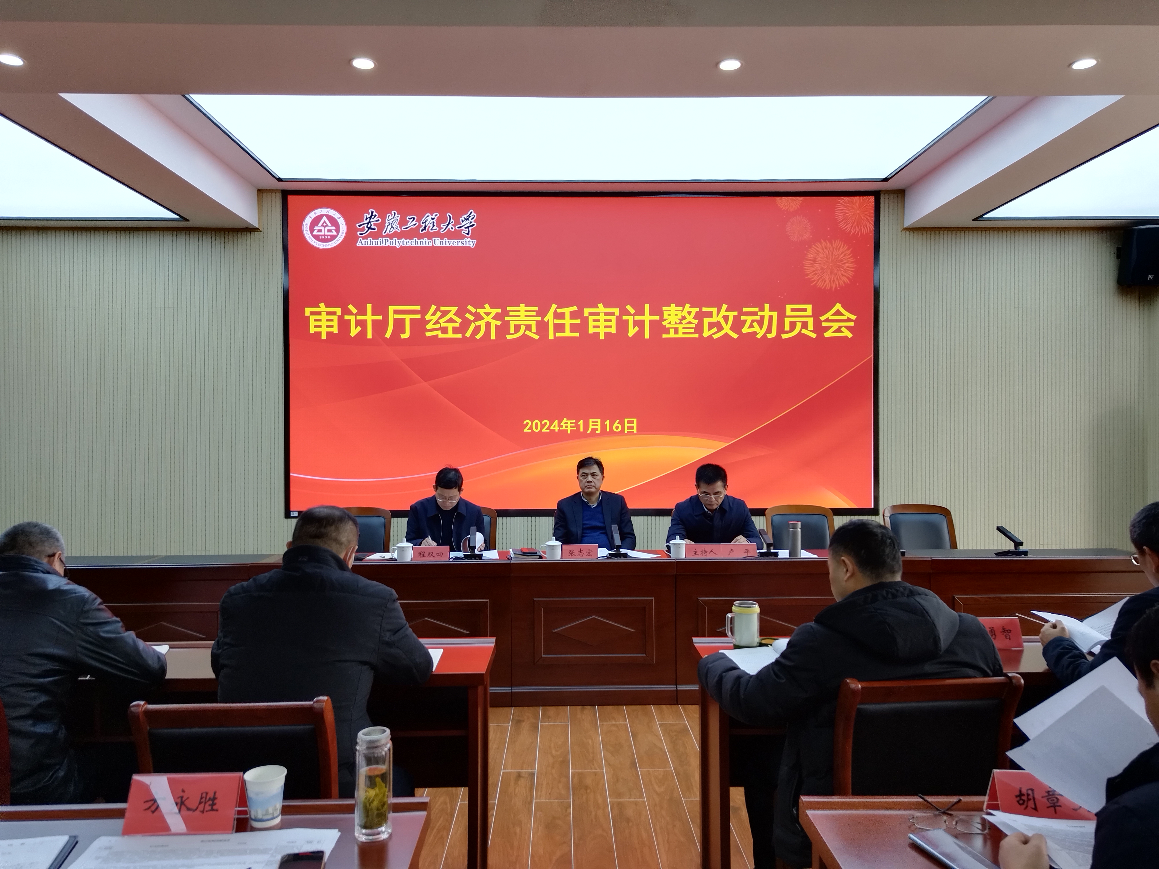 本网讯1月16日,学校在A座1314会议室召开审计厅经济责任审计整改动员会。校党委书记张志宏,校党委副书记、校长卢平,校纪委书记、监察专员程双四出席会议,各学院党政主要负责人,各部门主要负责人参加会议。会议由卢平主持。