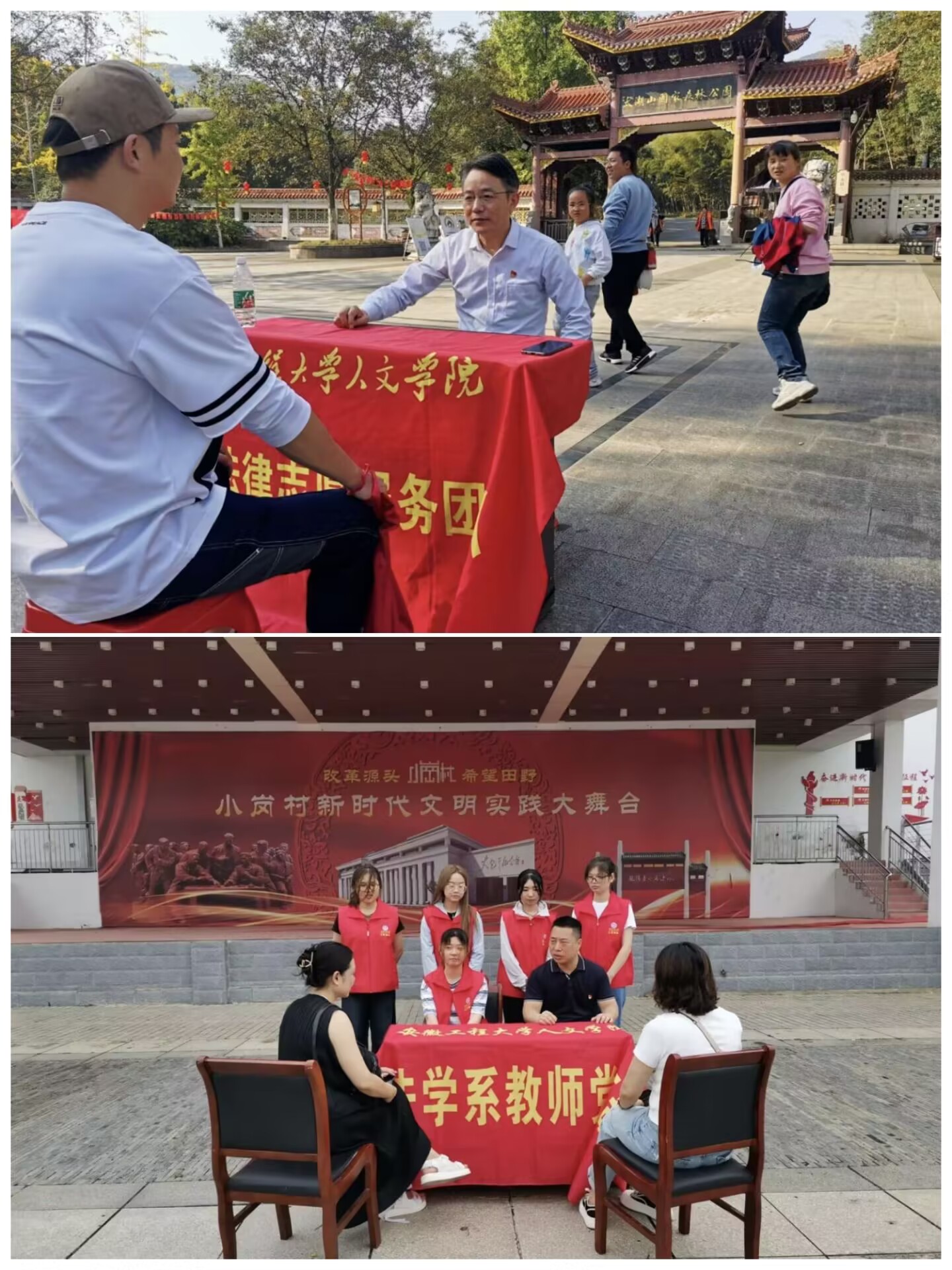 人文学院法学系教师党支部根据专业优势,在开展主题党日活动时,以认真开展政治理论学习为引领,积极创新普法实践活动形式并将之作为重要内容和环节融入主题党日活动,以法治实践活动为有效载体,充分发挥党支部和党员教师的先锋模范作用,加强法治理论宣讲、咨询服务、红色教育基地接受实践教育等形式,为群众提供法律帮助,为群众办好事、办实事。