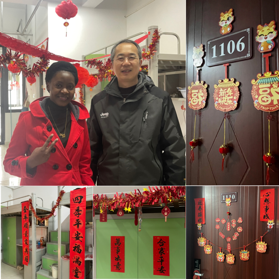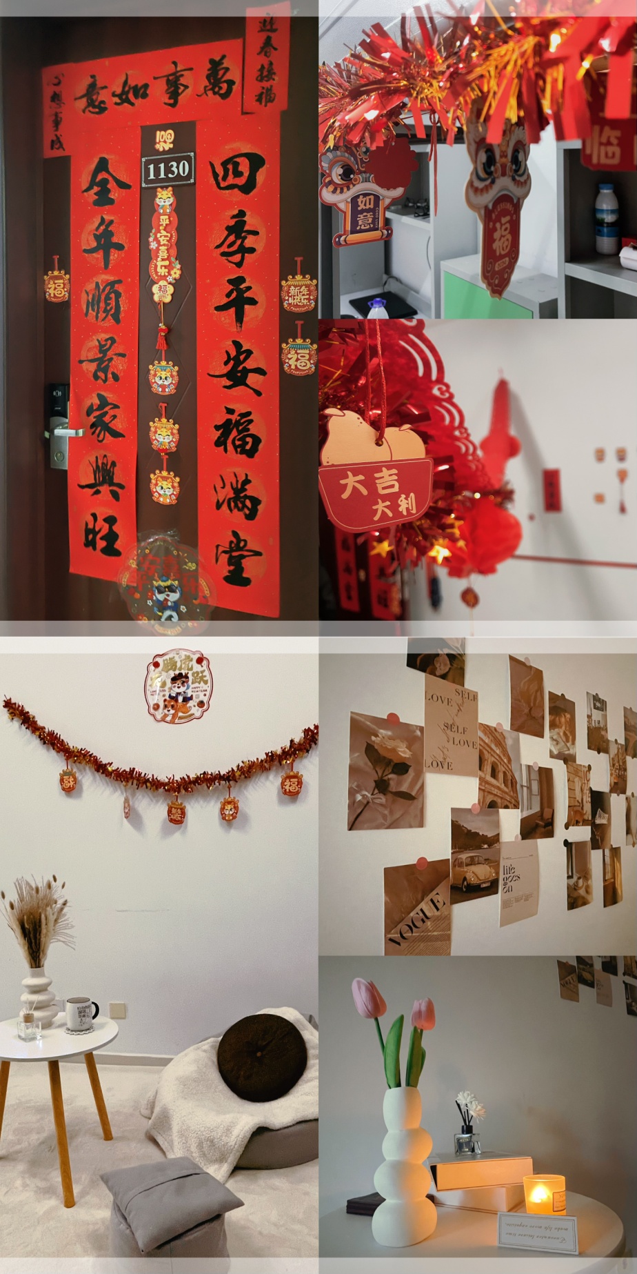 在此次宿舍文化节活动中,留学生们积极参与,他们结合对中国传统文化、特别是对中国春节文化的理解,以及自身的文化背景,将对中国的热爱和对生活的热情融入到设计之中。宿舍的文化设计各具特色,有的凸显了浓厚的汉语学习氛围,表现了春节、新年等主题;有的展现了艺术天赋,用精美的画作和照片布置起了照片墙……国际教育学院从卫生环境、文化特色、温馨指数、创意创新等几个方面对各个宿舍进行了评比。