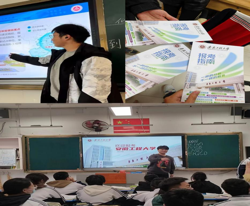 新能源材料231班徐福兴团队集中前往安徽省临泉县高铁中学、安徽省临泉汇英中学、安徽省临化中学开展回母校招生宣传活动。期间得到高中母校老师的支持,顺利进入各个高中班级,开心地与学弟学妹们分享大学校园的点点滴滴,鼓励高中学子们树立目标,努力拼搏。