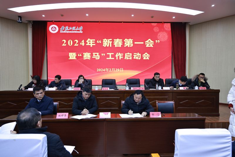本网讯2月29日,学校在A座104会议室召开2024年“新春第一会”暨“赛马”工作启动会。校领导,全体处级干部参加会议。会议由校党委副书记、校长卢平主持。
