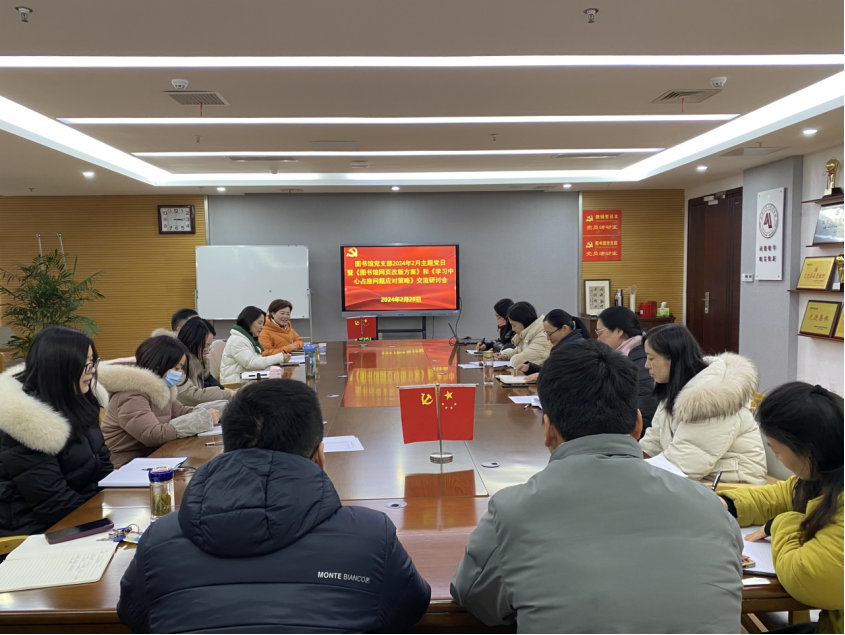 本网讯为进一步加强理论武装,深入学习贯彻习近平新时代中国特色社会主义思想、党的二十大精神,落实安徽省“新春第一会”部署要求,贯彻学校党委和教辅党总支2024年度工作要求,围绕聚焦重点工作、狠抓工作落实、扎实推进学校事业高质量发展等主题,全方位、多层次开展好“大学习”,2月28日,图书馆党支部在图书馆806会议室开展“占座应对策略”和“网页改版方案”专题研讨主题党日活动,并进行了2023年度党员民主评议。教辅党总支委员、继续教育学院副院长吴正霞到会指导,图书馆馆长李琛、副馆长王中江、图书馆党支部全体党员出席会议。会议由图书馆党支部副书记张义主持。