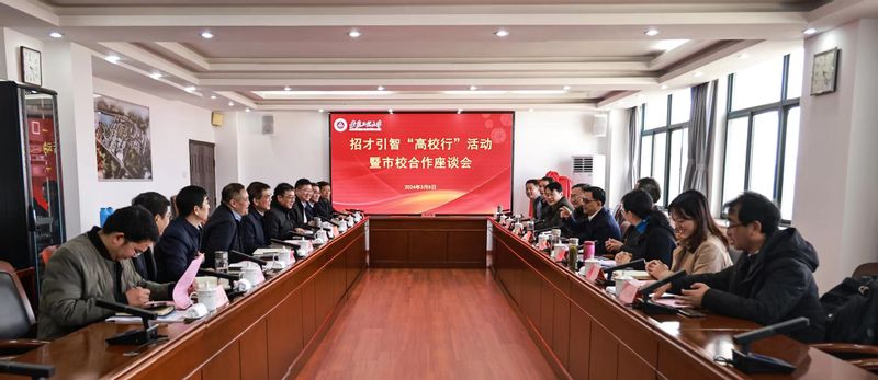 本网讯3月8日,六安市委常委、副市长王红携市委组织部、市科技局、经信局、人社局、发改委、农业农村局、投创中心、中小企业服务中心等相关单位及安徽正阳机械科技有限公司等单位有关负责人来校开展招才引智“高校行”活动。校党委副书记、校长卢平出席座谈会并讲话,校党委常委、副校长郑健出席并主持会议,办公室、组织部、人事处、学生处、科技处、社会合作处、人工智能学院相关负责人参加。