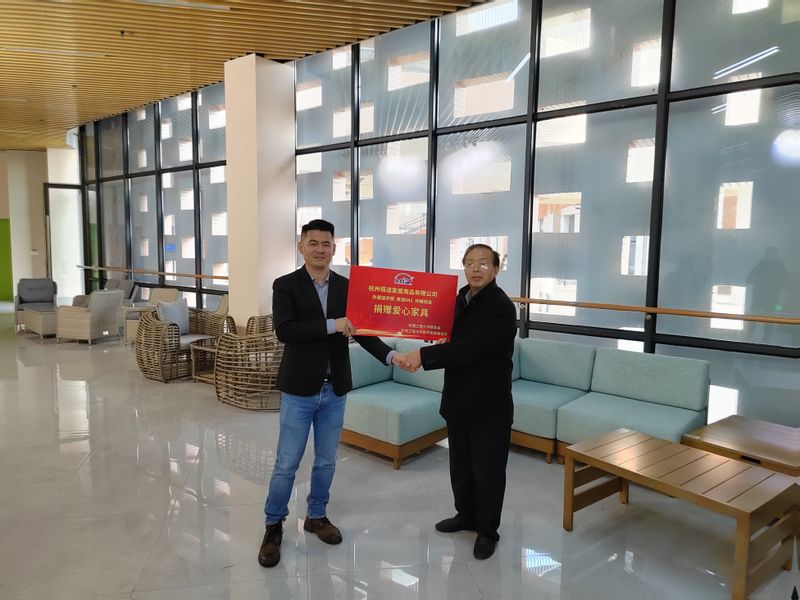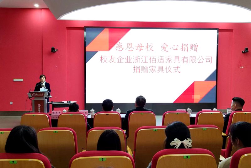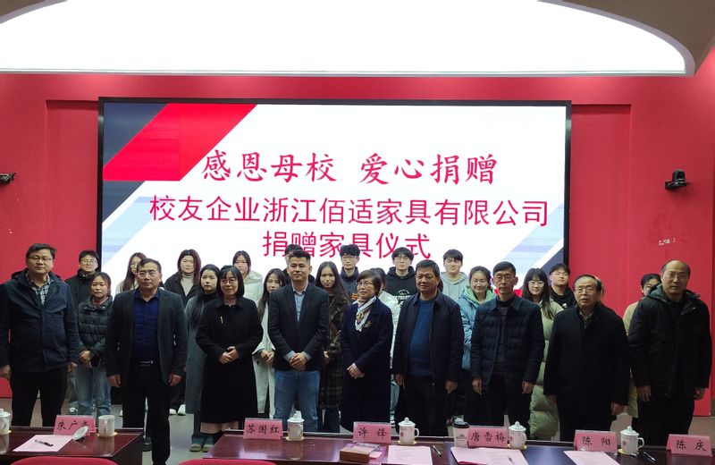 外国语学院副院长唐雪梅介绍了浙江佰适家具有限公司的基本情况及学院近年来的发展状况。陶玉贵代表学校接受校友企业捐赠的桌椅、沙发家具。杭州校友会会长朱广尧汇报了分会近年来在服务校友、回馈母校、搭建平台等方面的工作开展情况。