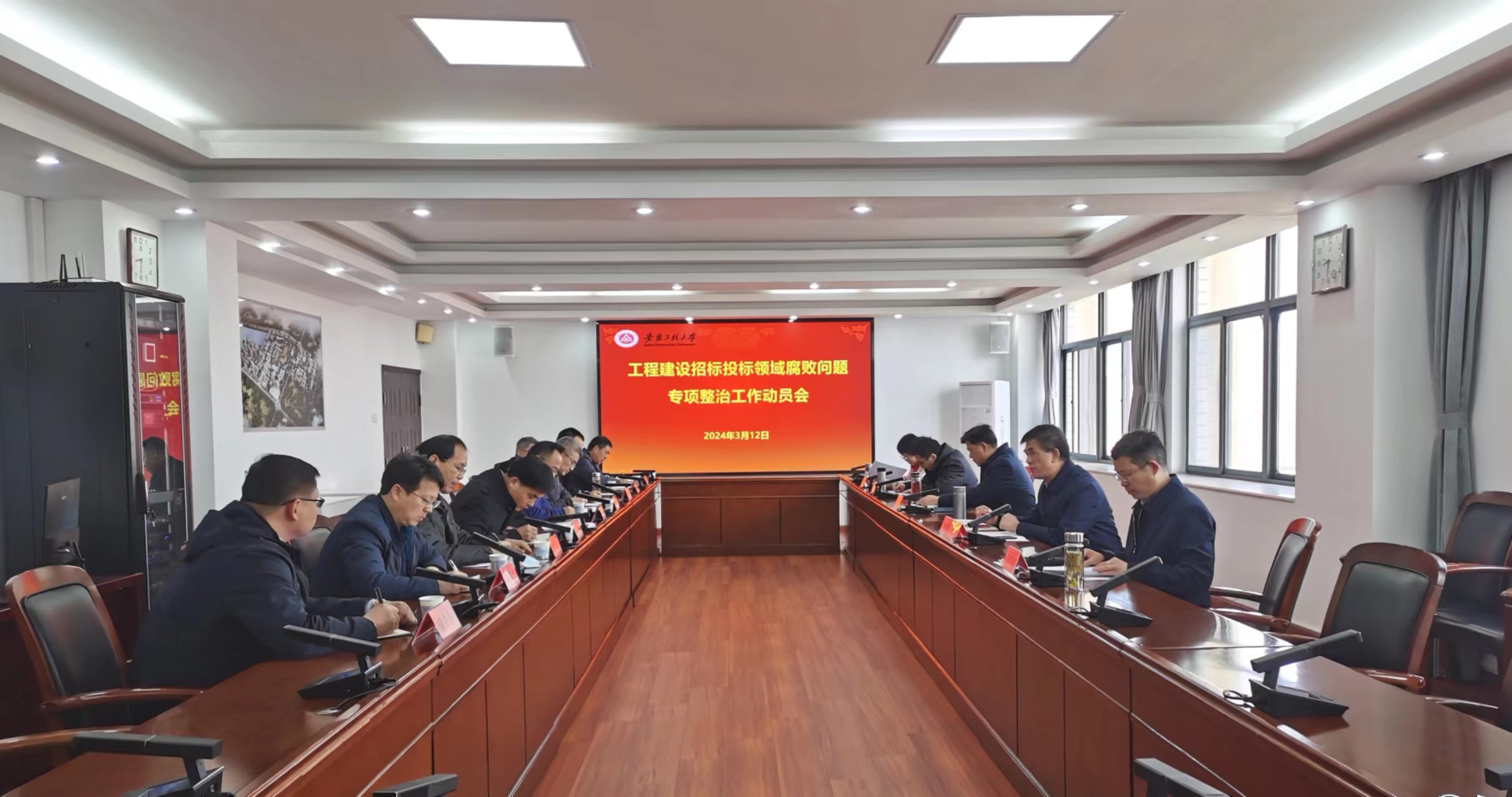本网讯3月12日,学校召开工程建设招标投标领域专项整治工作动员部署会。校党委书记张志宏出席会议并作动员讲话。校党委副书记、校长卢平主持会议。校领导郑健、程双四、周虹屏以及学校有关部门主要负责同志参加。