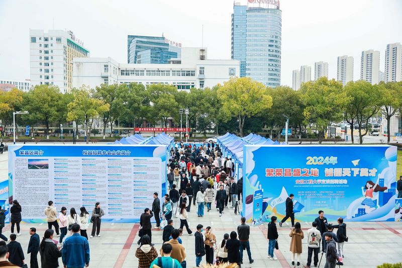 “繁荣昌盛之地 诚招天下英才”主题招聘会在图书馆门口广场举行,来自繁昌的40多家企业提供了500多个就业岗位,累计吸引了学校600多名同学参加。