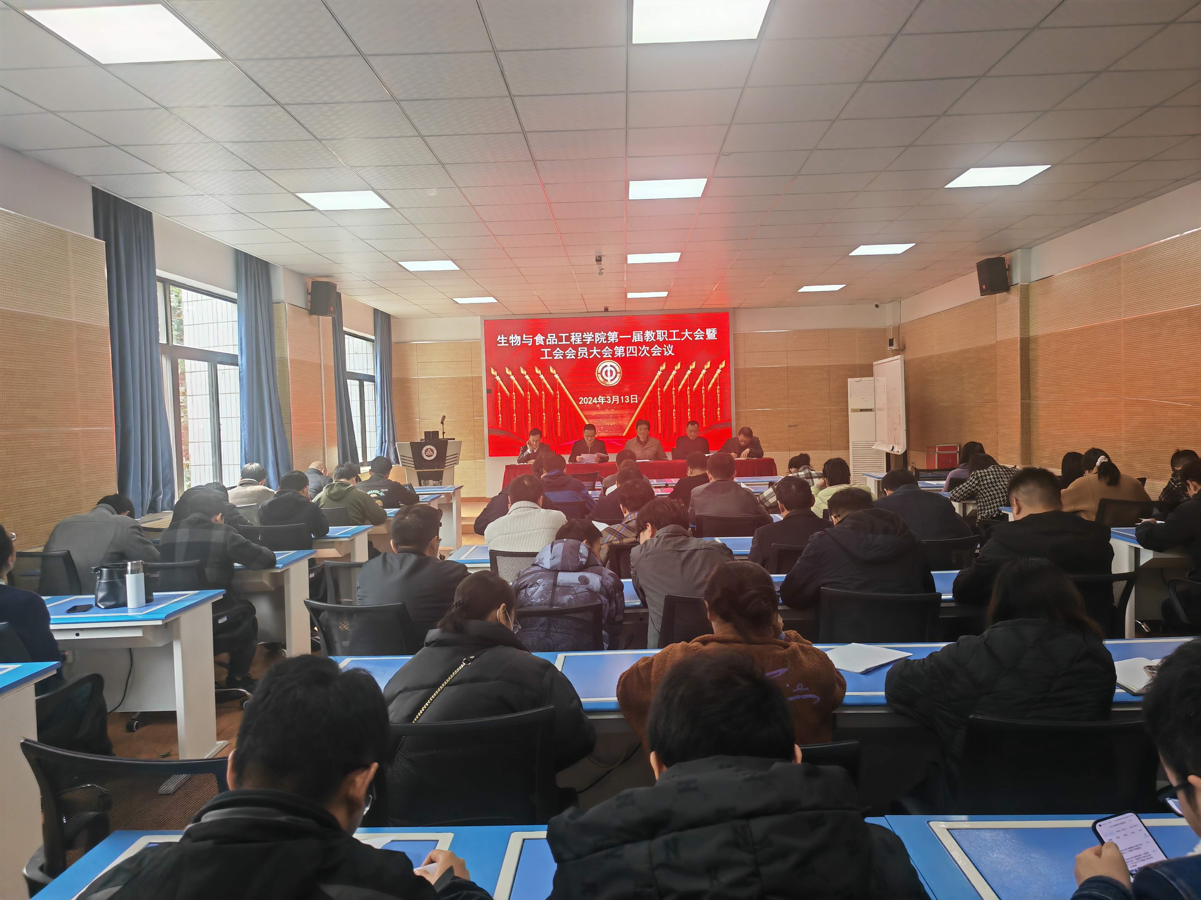 本网讯3月13日,生物与食品工程学院在虚拟仿真中心召开第一届教职工大会暨工会会员大会第四次全体会议。学院全体教职工参加会议,会议由学院党委书记余传文主持。