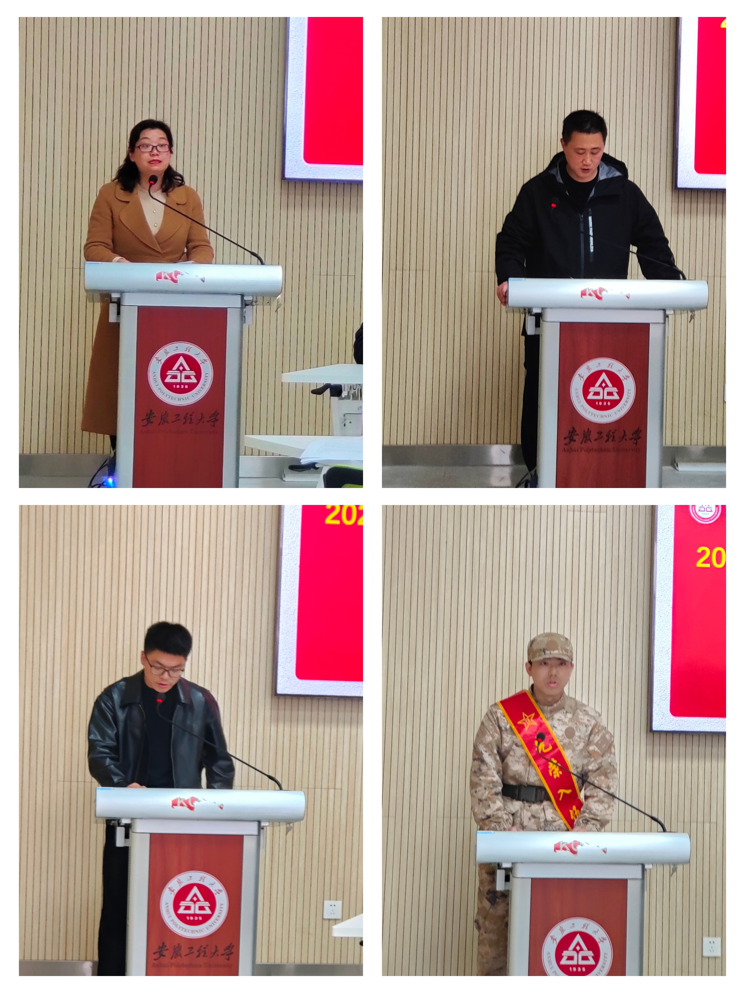 会上,武装部副部长杜松涛汇报了2024年春季征兵工作开展情况。计算机与信息学院党委副书记孙德茹和化学与环境工程学院辅导员王康向入伍同学送去诚挚的祝福和殷切的希望。化学与环境工程学院毕业生王家荣作为新入伍同学代表发言,感谢学校和老师的辛勤付出。会后,退役复学学生代表为新兵佩戴红花,与会领导为新兵赠送纪念品,并合影留念。