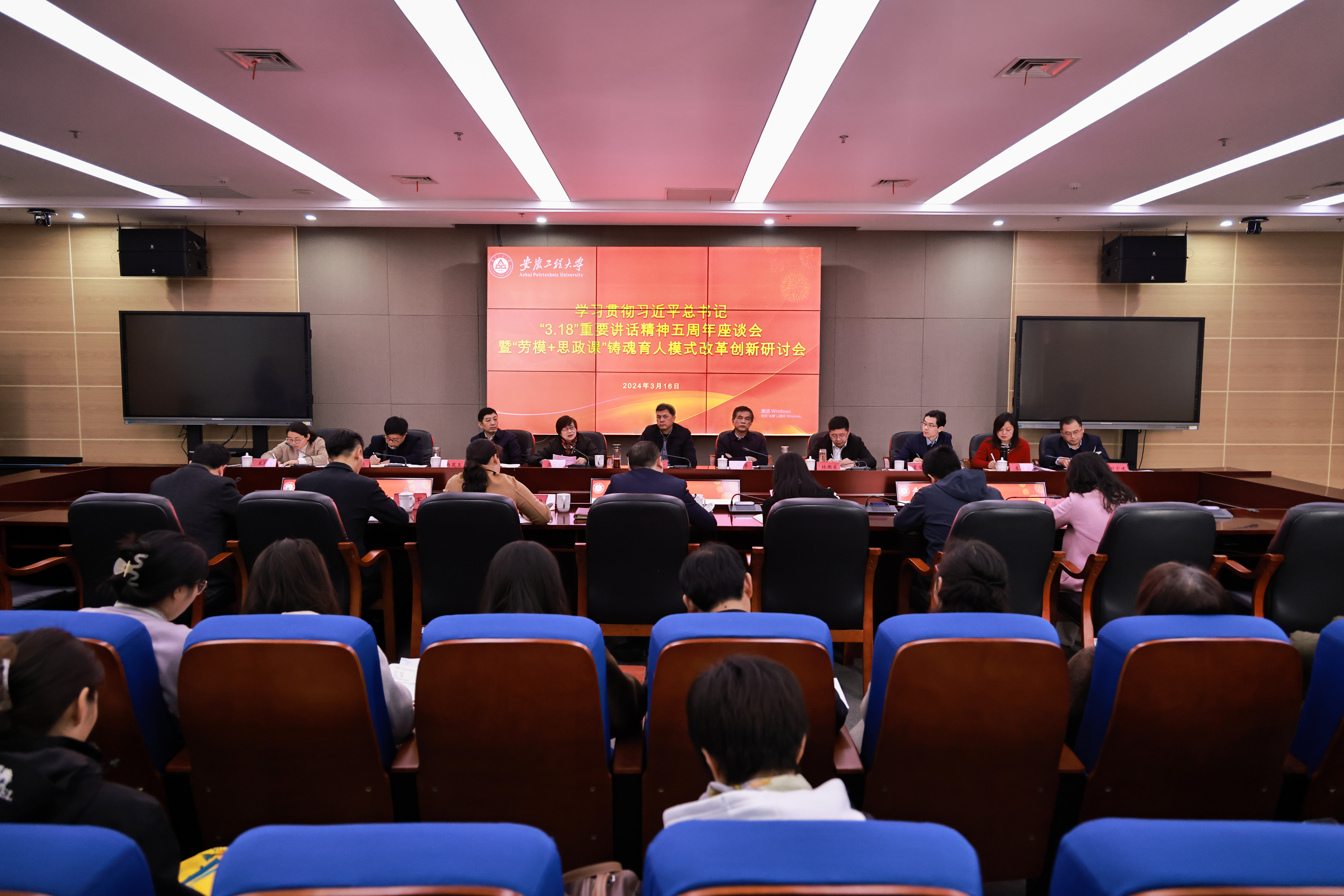 会上,与会人员集中观看了《思政课是落实立德树人根本任务的关键课程》视频。马克思主义学院党总支副书记、院长吴月红作《学习贯彻习近平总书记“3.18”重要讲话精神 砥砺奋进 守正创新——马克思主义学院建设五年回望》专题汇报。思政课教师代表毛加兴、毕亚琴分别围绕思政课教学方法、教师能力提升发言。宣传部、教务处、人事处、科技处、研究生部等职能部门表示将从学科队伍建设、专业设置、人才培养、项目申报等方面支持马克思主义学院发展。