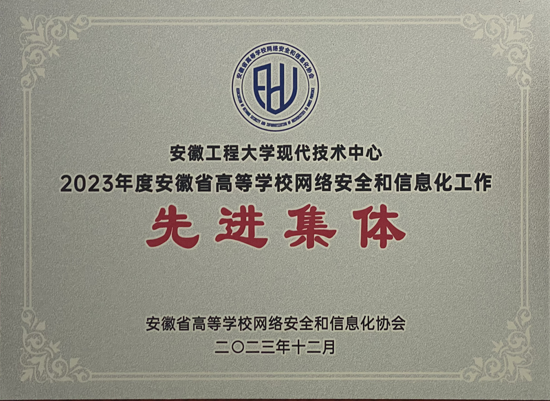 本网讯近日,安徽省高等学校网络安全与信息化协会开展了2023年度先进集体评选,对网络安全与信息化工作建设出色的高校单位进行了表彰。我校现代技术中心被评为2023年度安徽省高等学校网络安全与信息化工作先进集体。