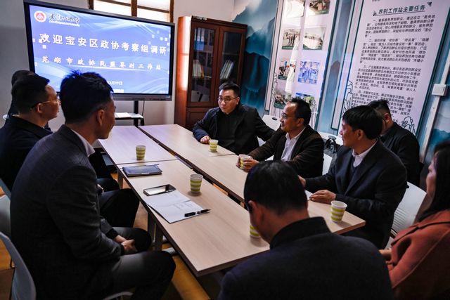 本网讯3月19日,深圳市宝安区政协党组书记、主席姚刚一行,在芜湖市政协副秘书长、办公室主任陶泰山的陪同下,来校调研基层政协建设工作,走访民盟界别工作站、郭广春委员工作室,与我校师生代表座谈交流。校党委常委、副校长郑健陪同调研。