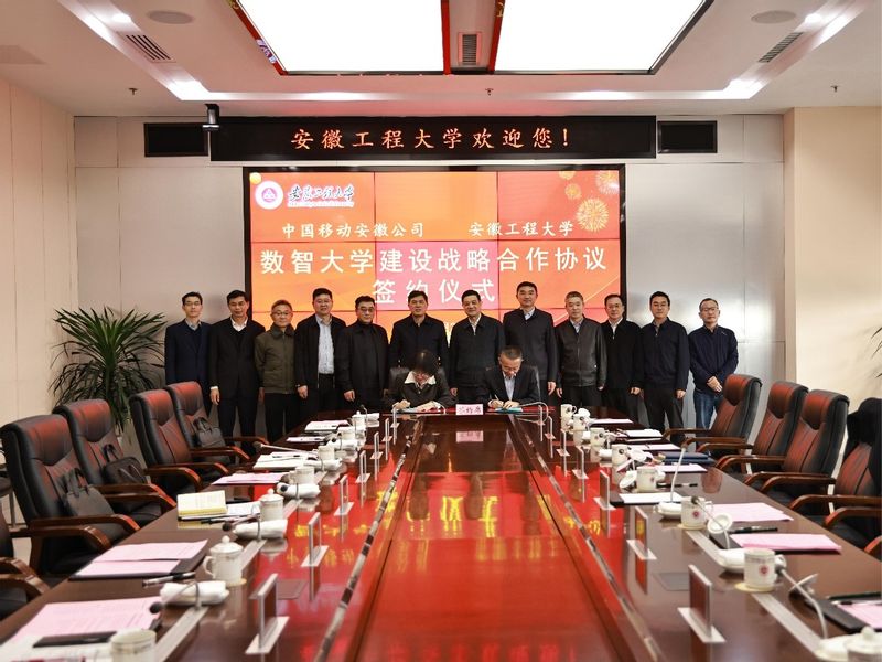 本网讯3月26日,我校与中国移动通信集团有限公司安徽公司(以下简称中国移动)在国际工程师学院校区签署数智大学建设战略合作框架协议。中国移动安徽公司党委书记、董事长、总经理钱力,中国移动安徽公司党委委员、副总经理韩露,校党委书记张志宏,校党委常委、副校长郑健,副校长周虹屏出席签约仪式。办公室、教务处、科技处、现代技术中心、社会合作处、研究生部等部门负责人参加。活动由郑健主持。