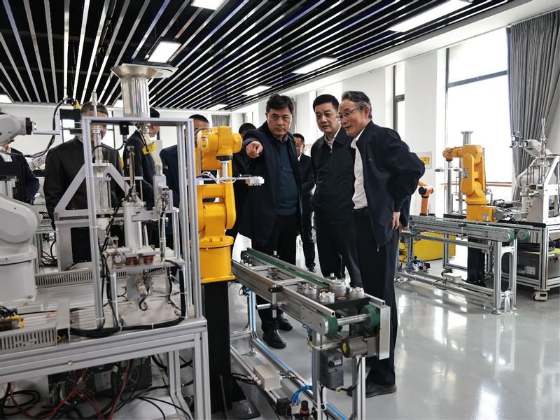 会前,钱力一行参观了学校国家级机器人现代产业学院、机器人产业技术研究院、移动导航机器人实验室,听取了国际工程师学院校区建设与运行情况汇报。