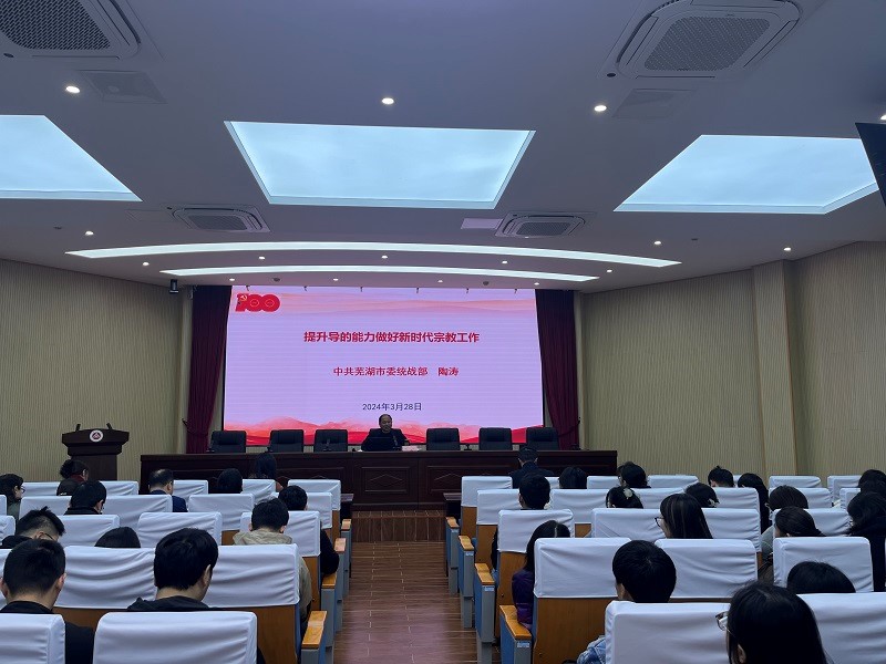 论坛邀请芜湖市委统战部副部长、市民族宗教事务局局长陶涛作宗教工作专题培训。陶涛以“提升导的能力做好新时代宗教工作”为题,立足宗教事务的基本概念和高校宗教工作的相关内容,以鲜活的案例阐释了宗教工作面临的新形势、新情况、新问题,介绍了做好高校宗教工作的基本对策和措施。他指出,做好宗教工作要“四个坚持”,坚持党的宗教工作基本方针、坚持党的宗教工作的本质是群众工作的基本理念、坚持我国宗教中国化方向、坚持为宗教工作培训队伍的工程。他强调,高校学生工作人员要充分认识宗教工作的特殊重要性,以高度的政治担当和行动自觉做好学校宗教工作。