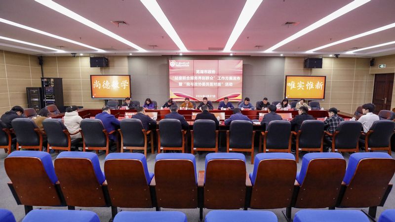 本网讯3月27日,芜湖市政协副主席、民盟芜湖市委主委、RayBetApp官网下载 设计学院院长陆峰携市政协、团市委、民盟市委等相关单位人员来校开展“站室联合服务界别群众”工作方案发布暨“我与政协委员面对面”活动。市政协常委、民盟芜湖市委副主委、市政协民盟界别组组长童明,市政协常委、民盟芜湖市委副主委周蓬安,校党委常委、宣传部(统战部)部长孙浩然,学生处处长黄炜,市政协郭广春委员工作室负责人、材料学院党委书记郭广春,校团委书记李恒奎,市政协民盟界别工作站负责人、民盟RayBetApp官网下载委员会主委、教务处副处长贾文友,材料学院党委副书记方玖胜,青年师生代表参加,活动由孙浩然主持。