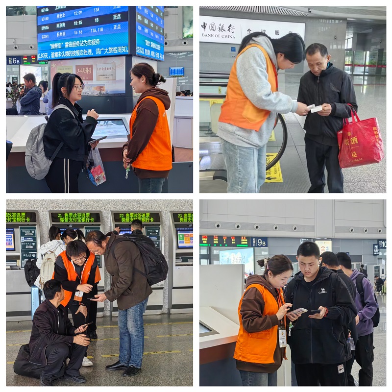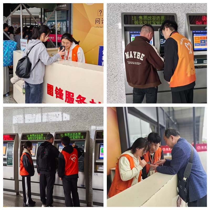 清明期间,芜湖市火车站往来客流量达39.2万人次,其中4月6日单日客流达15.2万人次,创历史新高。在芜湖站的大力支持下,共160余名志愿者参加本次活动。东进站口雷锋服务台的志愿者为准备检票进站的旅客耐心解答疑问、指明道路;售票厅的志愿者帮助特殊群体旅客取票、退票;扶梯口的志愿者帮助旅客将行李提到候车区……志愿者们在各自的岗位认真负责、毫不懈怠,优质的服务彰显出新时代青年大学生的良好素质和精神风貌。