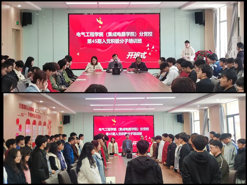 本网讯为深入学习贯彻习近平新时代中国特色社会主义思想和党的二十大精神,深入贯彻落实新时代党的建设总要求和新时代党的组织路线,做好对入党积极分子的培养教育工作,4月9日,电气工程学院(集成电路学院)分党校第45期入党积极分子培训班开班式在国际工程师学院龙胜楼206会议室举行。