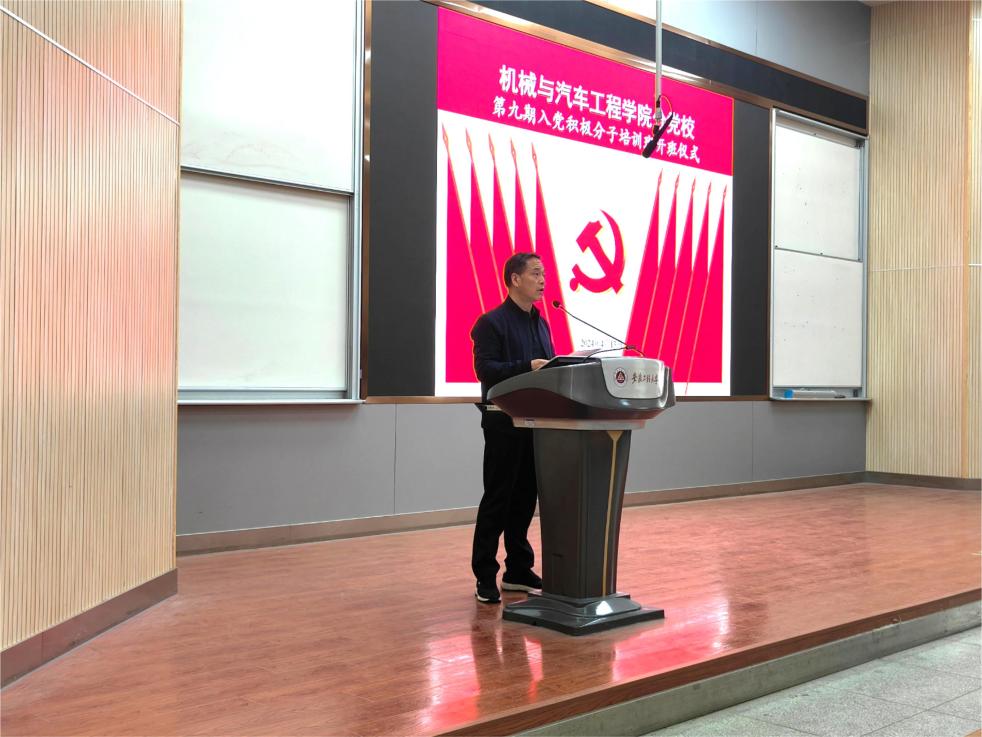 本网讯为深入贯彻落实新时代党的建设总要求和新时代党的组织路线,把好发展党员“入口关”,切实提升入党积极分子思想政治理论素养,4月13日,机械与汽车工程学院第九期入党积极分子培训班开班仪式在校本部2J报告厅举行。学院党委书记魏长顺、分党校培训班班主任许典舟、孙志鹏老师及全体培训班学员参加了本次活动。开班仪式由孙志鹏主持。