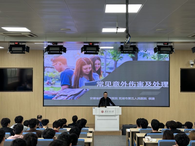 本网讯为了让广大师生了解应急救护常识,掌握基本的自救、互救技能,提高自我防护和自救互救能力,切实增强安全意识,有效应对校园突发事件,守护生命健康与安全,4月13日,材料科学与工程学院特邀安徽省皖南康复医院(芜湖市第五人民医院)院前急救科主任侯捷来校作题为“学校中意外伤害的救治与处理”的专题报告。学校和谐学生社区党委书记、管委会副主任、学生处副处长郭全根,学院党委书记郭广春,学院全体本科、研究生辅导员、班长、团支书、生活委员、团委学生会成员、“白芨花”急救知识宣传普及项目团队成员和全校自愿报名活动的学生100余人参加。会议由学院党委副书记方玖胜主持。