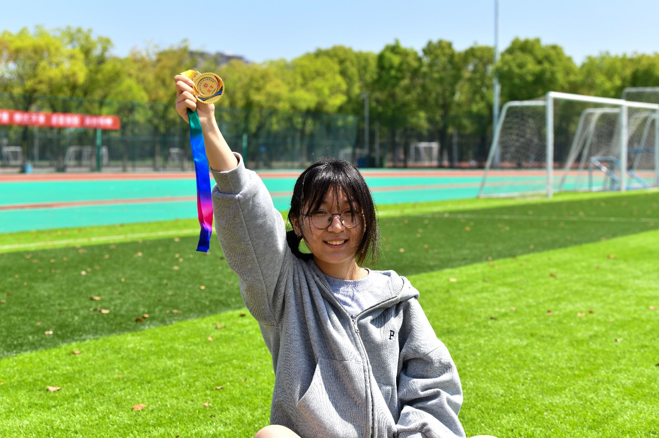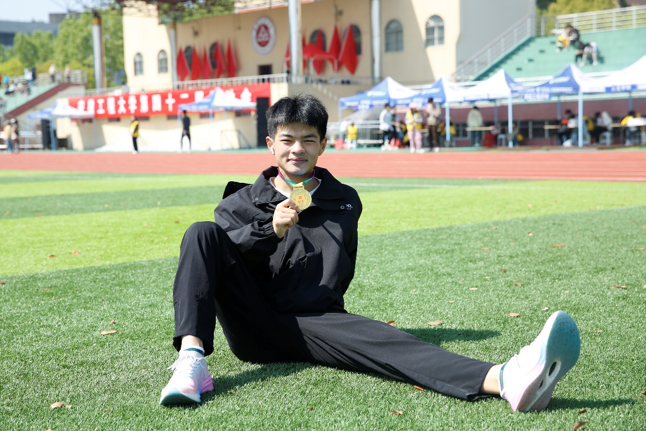 “虽累犹荣尽显健儿风采,四百米是对速度和耐力的双重挑战,冲刺时耳边的加油声使我爆发出无穷的力量。我明白,无论赛场内外,总有一块金牌叫坚持。”