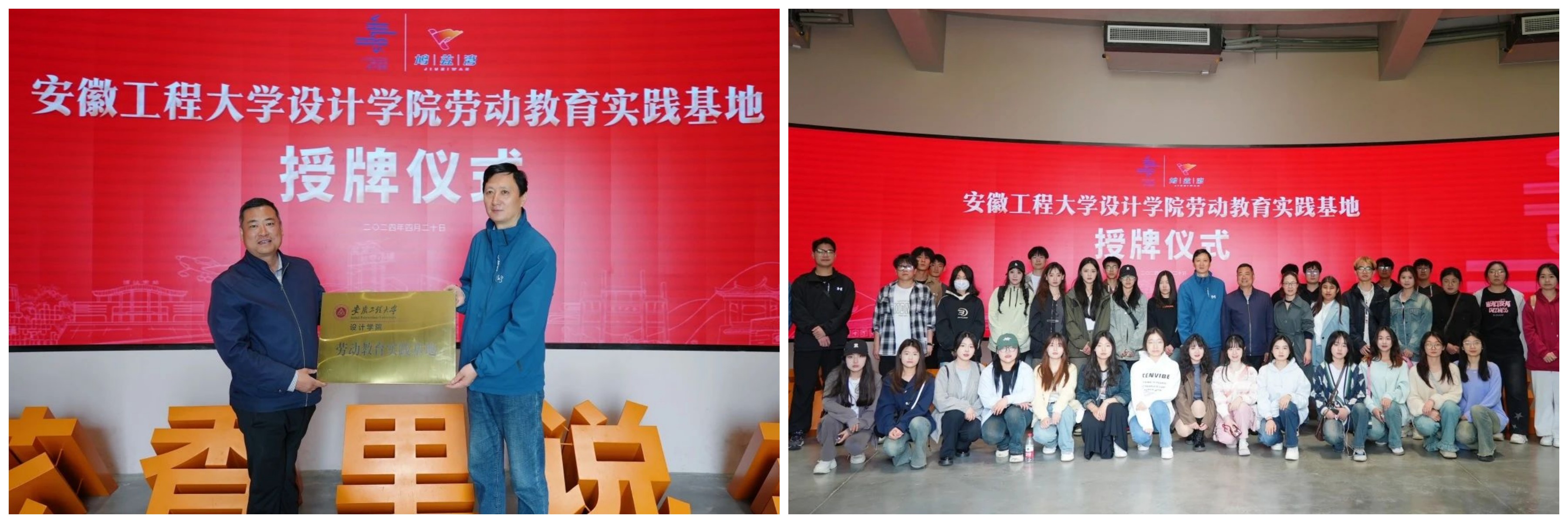 设计学院携手鸠兹湾艺创共富乡村成立劳动教育实践基地,院党委书记胡家增、杰出校友安徽顶峰艺创集团董事长夏云兴出席授牌仪式。劳动教育实践基地的建立,不仅为设计学院学子提供了一个宝贵的实践平台,更能通过这一创新模式实现人才培育与乡村振兴的双丰收,为培养新时代优秀人才和推动乡村经济文化发展注入新的活力。