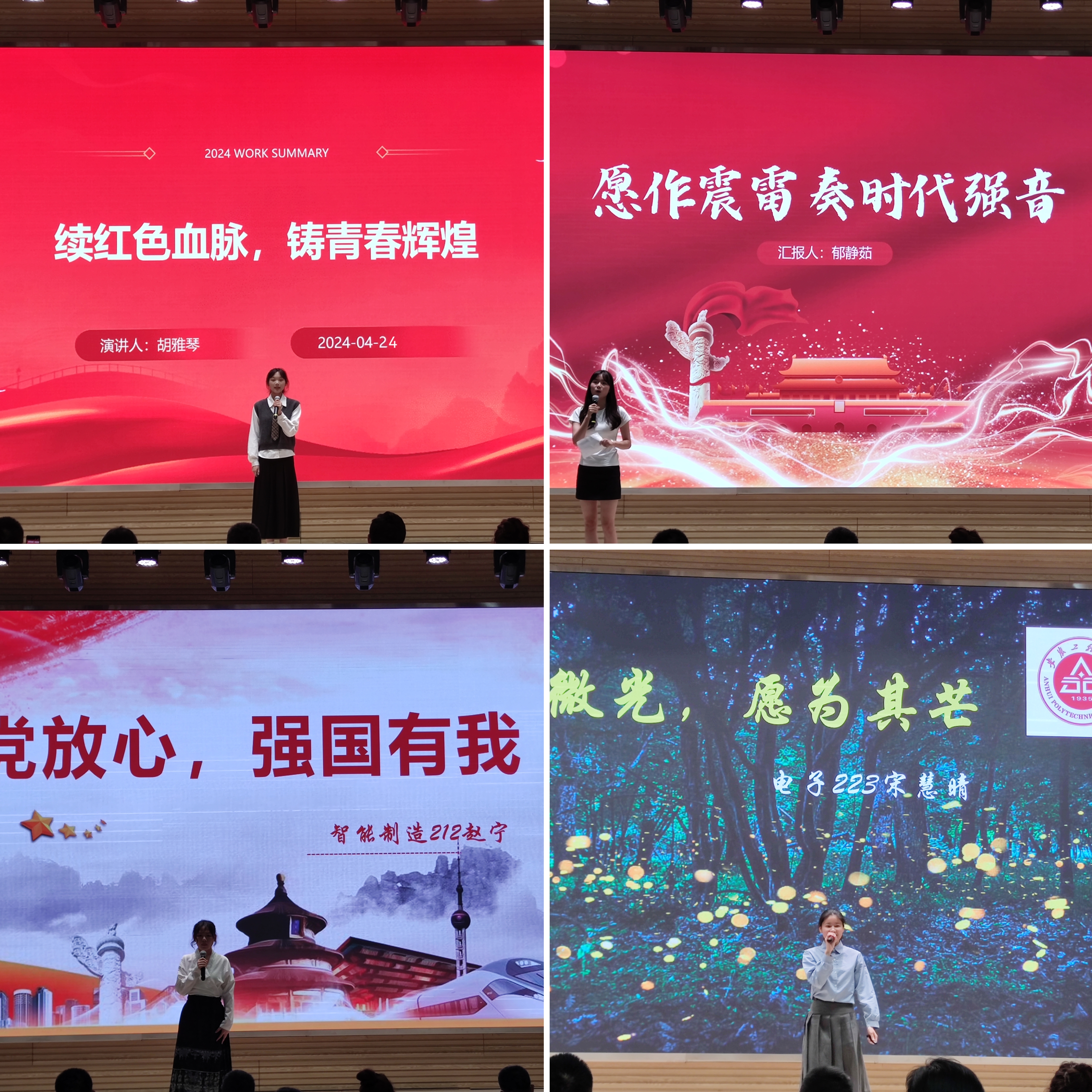 本网讯4月24日,学校在国际工程师学院校区举办“强国复兴有我·青年说”演讲比赛。校党委宣传部、校团委、电气工程学院、万春街道党相关负责人,国际工程师学院校区学院团委负责人、学生代表共计200余人参加活动。评出一等奖1名、二等奖2名,三等奖3名、优秀奖14名。