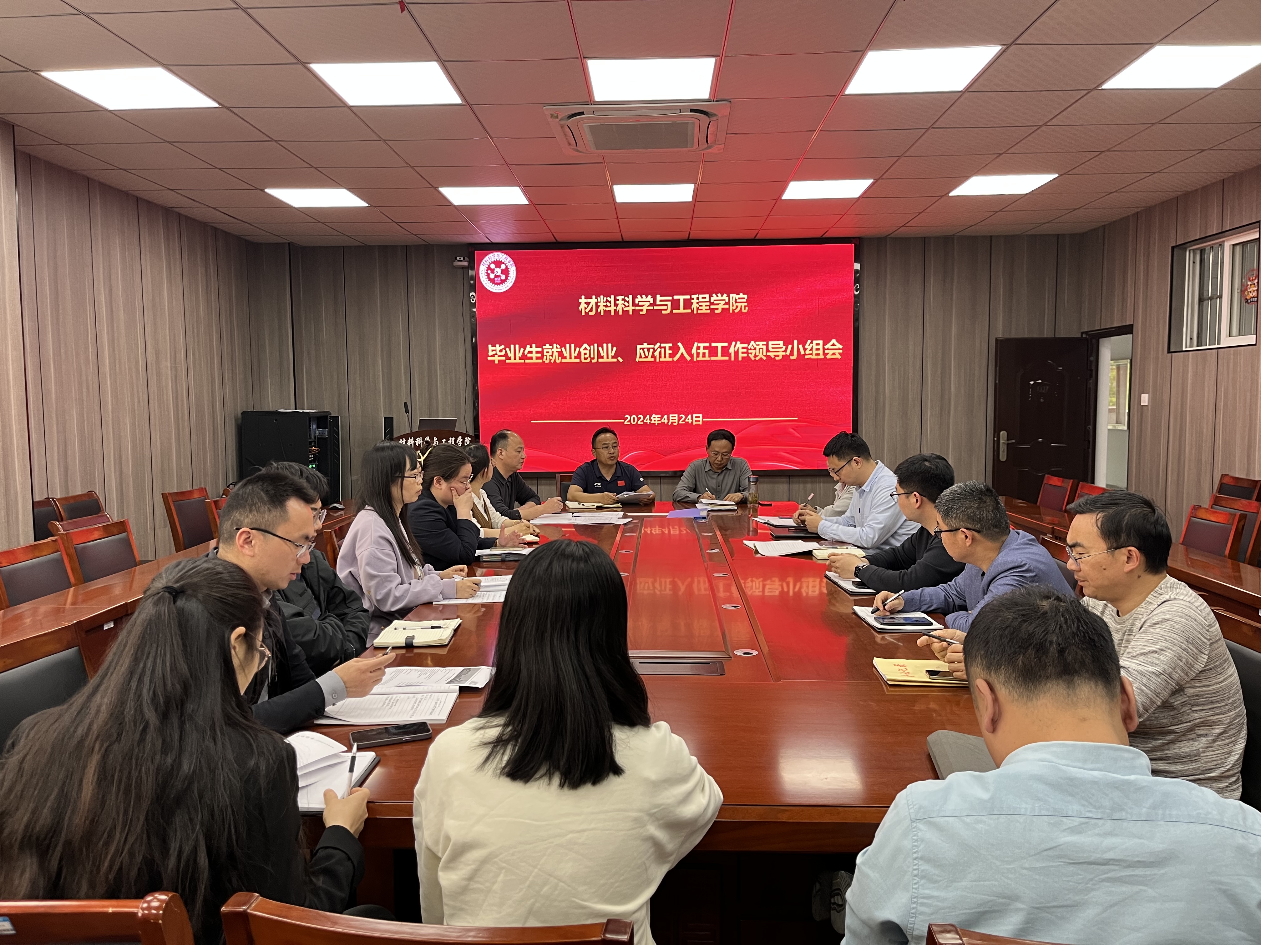 本网讯为全面推进2024届毕业生就业创业征兵工作,4月24日,材料科学与工程学院在B座216会议室召开2024届毕业生就业创业、应征入伍工作领导小组会议。会议由院长左如忠主持。