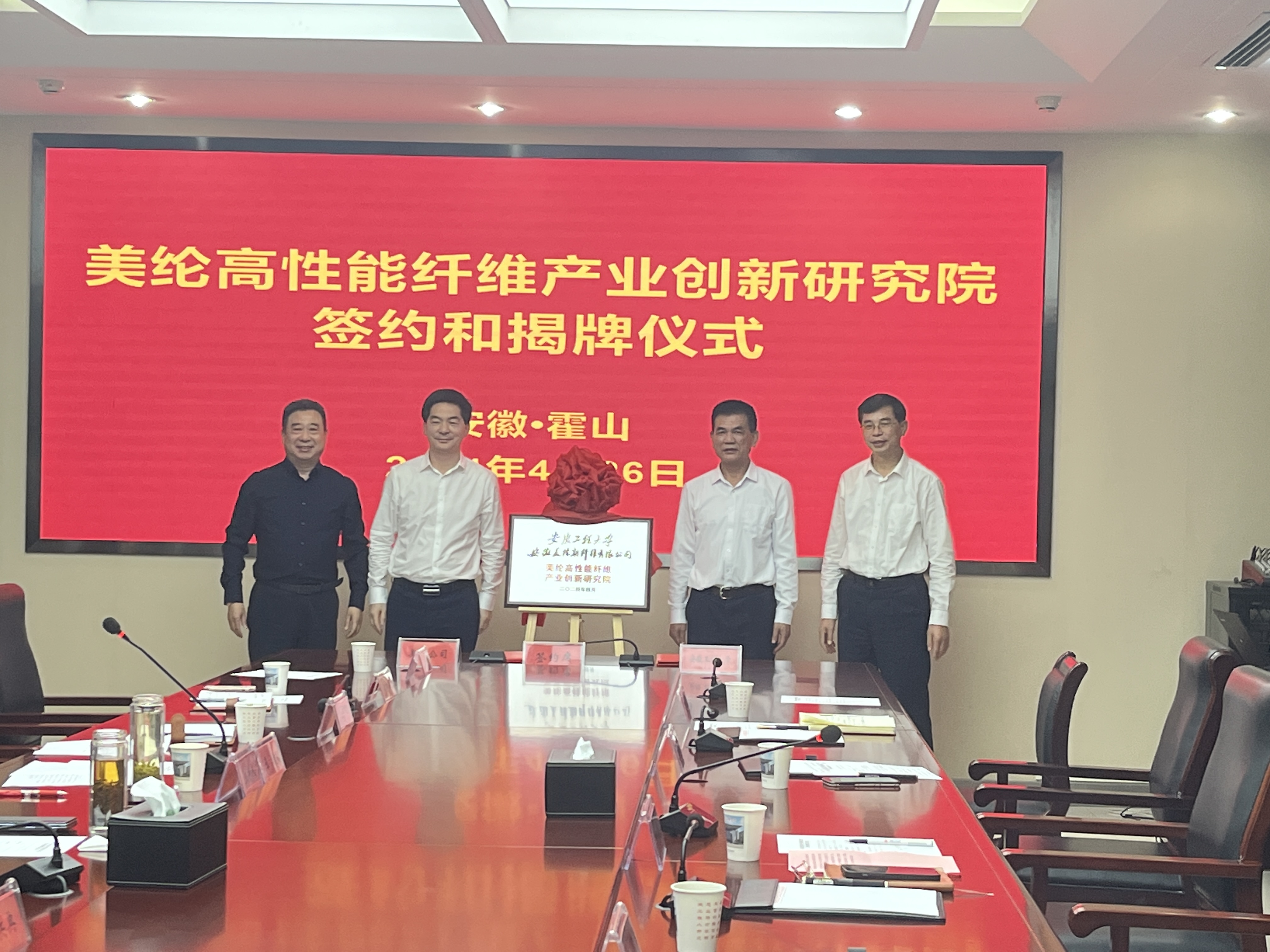 本网讯为深化校企产学研合作,深入推进校企融合,4月26日,学校与安徽美纶新纤维有限公司共建的“美纶高性能纤维产业创新研究院”签约暨揭牌仪式在霍山县举行。校党委副书记、校长卢平,校党委常委、组织部部长王弘,霍山县委副书记、县长罗文,霍山县委常委、副县长王翔,安徽美纶总经理程洪典,霍山县有关部门负责人、学校相关职能部门及纺织服装学院主要负责同志,安徽美纶相关人员参加。揭牌仪式由王翔主持。