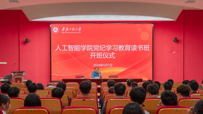 本网讯按照学校党委关于党纪学习教育的工作部署,根据学院党纪学习教育实施方案要求,5月7日在图文信息中心梦溪报告厅,人工智能学院举办党纪学习教育读书班开班仪式,并邀请芜湖市湾沚区委常委、组织部部长赵彗星进行开班第一讲,学院全体师生党员、分党校培训班学员参加。本次活动由人工智能学院党委书记任家钱主持。