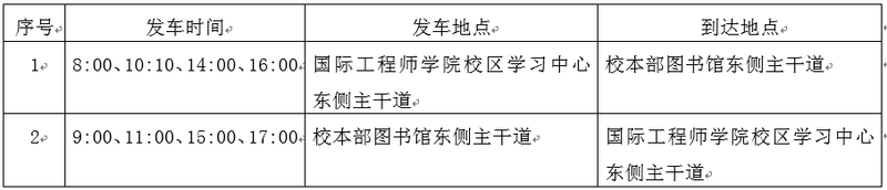 国际工程师学院校区往返校本部的周末学生班车自2023年5月份开通以来,很大程度上解决了学生周末往返两校区的交通问题,得到了大部分学生的点赞和认可。在新一轮班车协议签订过程中,校区管委会继续坚持以生为本原则,广泛采纳学生日常提出的意见建议,对班车运行部分内容进行了相应的调整和改进,不断提升学生的满意度。具体通知如下: