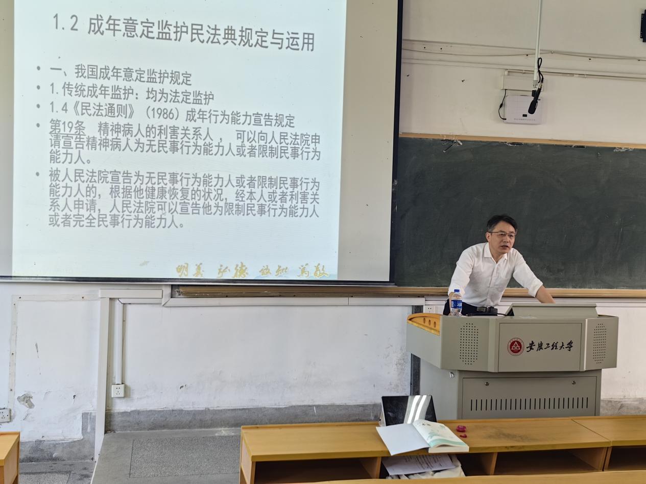 本网讯今年五月是第四个“民法典宣传月”,为进一步扩大《中华人民共和国民法典》宣传面和普及度,切实提高我校青年学生群体法律素养,5月15日,人文学院法学系教师党支部张雷、汪晓宇、王存胜、邵志超四位党员教师分别在4J107、4J111、4J109、4J201,为生物与食品工程学院、电气工程学院(集成电路学院)、经济与管理学院、计算机与信息学院以及校法律协会、模拟政协协会共计400余名本科生、研究生做了题为“《中华人民共和国民法典》的主要内容及其重大意义”的专题讲座。