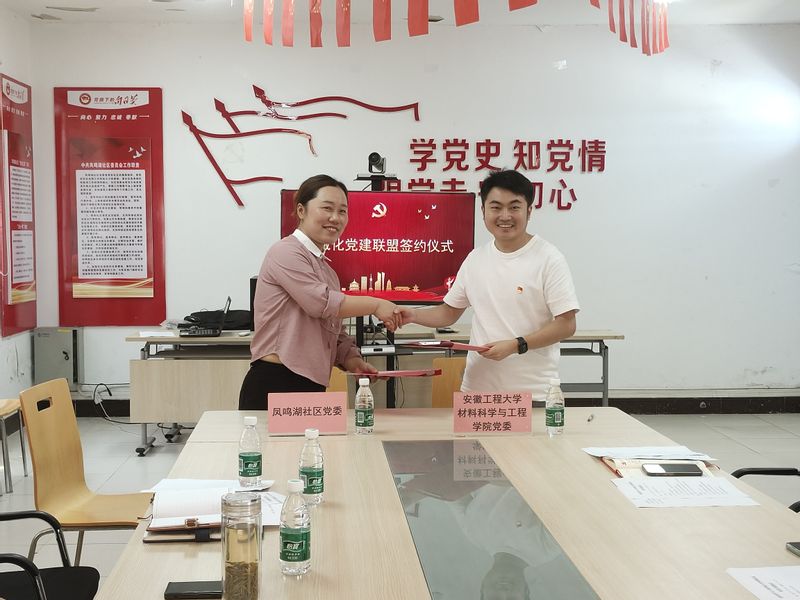 本网讯5月18日,材料科学与工程学院学生党支部与凤鸣湖社区党组织共同开展了“共建共学”主题党日活动。结合党纪学习教育,开展了支部联学,深入交流研讨、凝聚思想共识,期间续签了共建协议,进一步推进校地基层党组织共建,落实落细我校“三抓”工作要求,提升学生党员参与社区治理的志愿服务意识,激发党建引领社区治理效能。材控、材科专业学生党支部带队,支部党员、“含笑花”志愿服务团队、劳动教育先锋示范班、材料科学社学生代表参加。