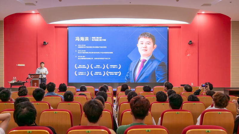 本网讯5月21日,人工智能学院邀请电子信息工程专业99级校友、安徽咪鼠科技有限公司总经理冯海洪做了一场题为《人工智能技术发展机遇与挑战》的精彩报告。学院党委书记任家钱、副书记李文江、学院师生代表参加了报告会,会议由副院长江本赤主持。