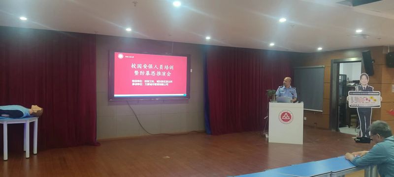 本网讯 为落实学校“三抓”工作要求,夯实校园安保工作根基,全面提升安保人员应急处置能力,5月21日,学校保卫处联合鸠江公安分局城东新区派出所对校园安保人员开展教育培训暨防暴恐推演活动。保卫处副处长江海、城东新区派出所副所长李圣文以及学校为民警务站辅警、校园安保人员参加活动。