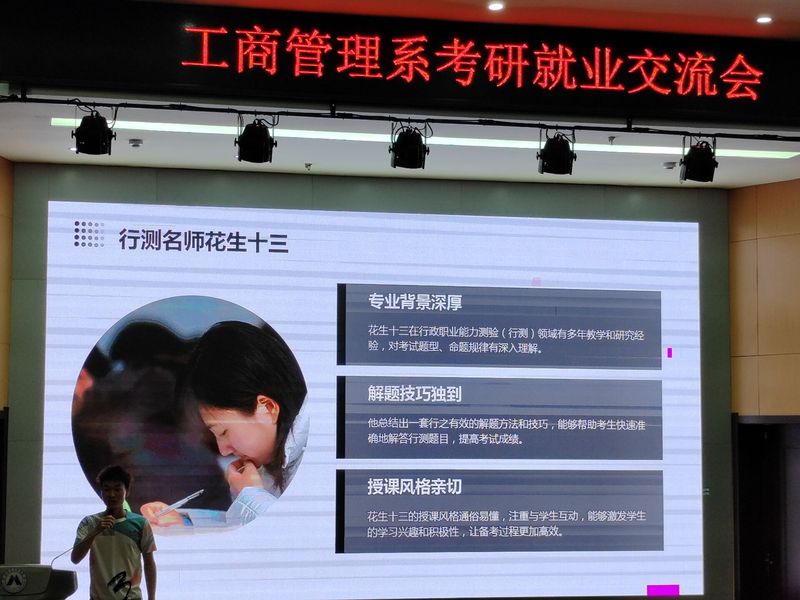 丁一介绍了近五年工商管理系考研和就业总体情况,分析了2024年考研与就业现状,他鼓励青年大学生树立终身学习的理念,增强个人的综合素质和竞争力,做精做细大学生涯规划,助力人生发展上新的台阶。在考研方面,5名考取研究生的同学从不同角度介绍自己考研经验,具体分享了考研的目标选择、学习方法、时间安排、备考心态等。来自人力专业202班汪晓红向大家介绍了自己各科的学习方法,分享了要不要研友、如何坚持到底等经验。人力专业201班王佳慧分享了自己各个时间线的学习安排,强调了考研期间心态调整的重要性,为大家分享了自己疏解压力的方法。工商专业201班王永荣分享了自己择校历程,为大家提供择校方法。在就业方面,人力专业202班王一晨向大家分享了自己的面试经历,总结了自己的面试技巧,提出了简历制作的一些建议。孙悦向大家强调了简历的重要性,鼓励大家多积极找老师参加比赛,去实习等丰富自己的简历。胡厚坤就考公是什么、各级公考介绍、备考建议向大家详细分享了自己考公历程、学习方法、资料选择等,让同学们对考公有了更加理性的认识。