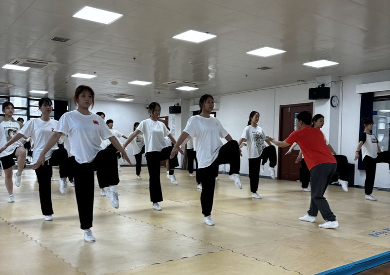本次观摩课程为校级教坛新秀董仕林老师讲授的《健美操(1)》,内容为竞技健美操基本步伐练习、倒立和竞技健美操操化练习。董仕林通过复习已学的基本步伐为导入,利用严谨通俗的教学语言、得体的教态和规范的示范动作展示了健美操高雅的艺术性、竞技的标准性和动作的观赏性,在音乐伴奏下,能够连续、复杂、高强度完成成套动作。教学中,教师强调肢体放松与紧张的节点,身体的正确姿态、动作技术要领,同时辅以动作示范,将动作的质感和竞技之美展现的淋漓尽致。学生完全参与,充分练习,各个精神饱满,活力四射。前来听课的教师耳目一新,好评如潮。