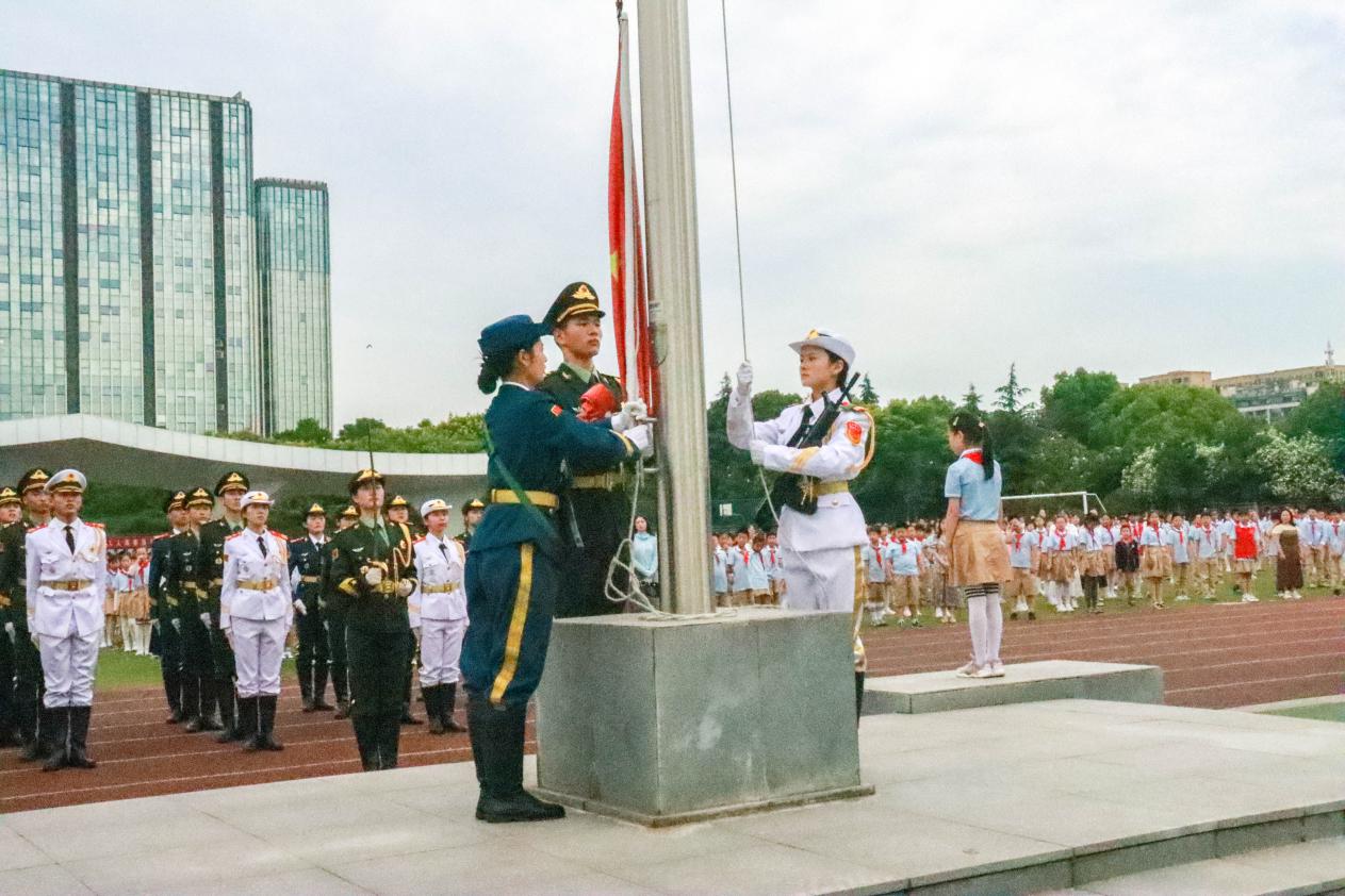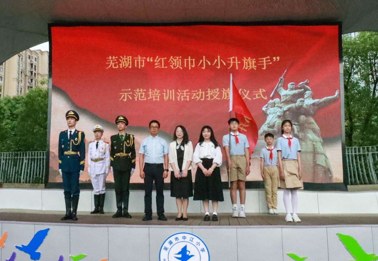 本网讯为深入学习宣传贯彻习近平总书记关于青年工作的重要思想,推进大中小思政课一体化建设,6月3日,学校联合团芜湖市委在中江小学举办2024年芜湖市“红领巾小小升旗手”示范培训活动启动仪式。校团委书记李恒奎、中江小学校长林蓉、团市委学少部负责人钱泽慧、校国旗护卫队成员及中江小学师生代表参加了本次活动。