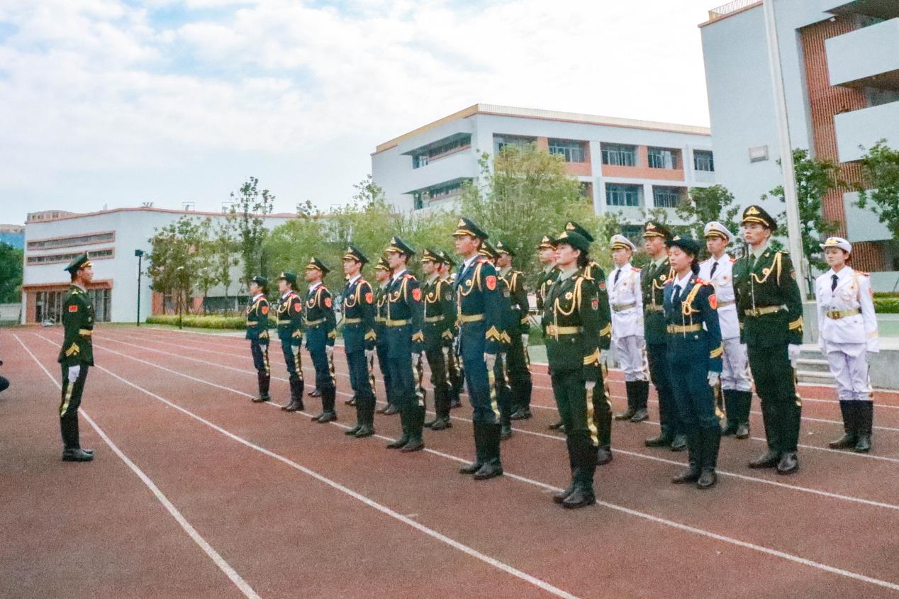 升旗仪式结束后,国旗护卫队进行队列动作展示,铿锵有力的口令、整齐划一的步伐、规范严谨的动作、英姿飒爽的军姿,展现了极高的训练素养和水平,引来同学们阵阵掌声。