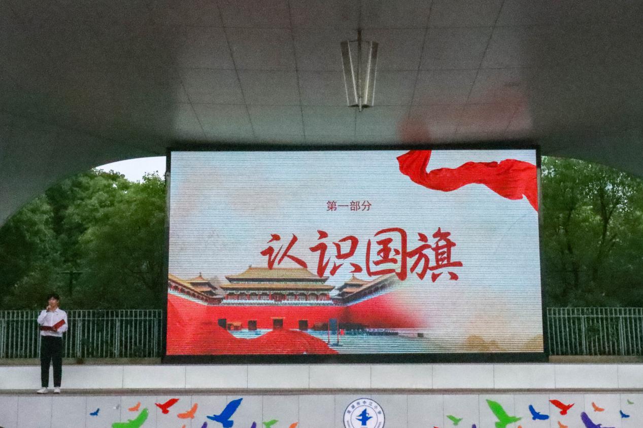 伴着初升的太阳,国旗护卫队迈着铿锵有力的步伐,护送国旗走向升旗台。在雄壮的国歌声中,全体师生行注目礼,鲜艳的五星红旗冉冉升起,迎风飘扬。