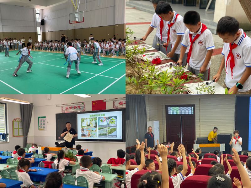 活动现场,赵国庆、曹锦芬为孩子们开展了以“革命精神恒久远,红色基因永流传”为主题的红色骑行故事宣讲会,鼓励同学们学习革命前辈对党忠诚、坚韧不拔的精神和毅力,从小立大志,努力学习,做建设国家的栋梁;纺织服装学院储长流教授带领的“行走的课程思政公益团队”精心设计“体会科技”活动,为孩子们讲解太空纺织科技及植物拓染技术,带领孩子们在帆布包上用收集的树叶和花卉手工拓印出美丽图案;体育学院博士、教授、北京奥运会火炬手、杭州亚残会火炬手、杭州亚运会卡巴迪竞赛技术运行主任薛保红宣讲了体育精神进校园的意义,卡巴迪教学团队为全县区小学体育教师开展卡巴迪运动培训,并带领孩子们开展了卡巴迪的实践教学活动。