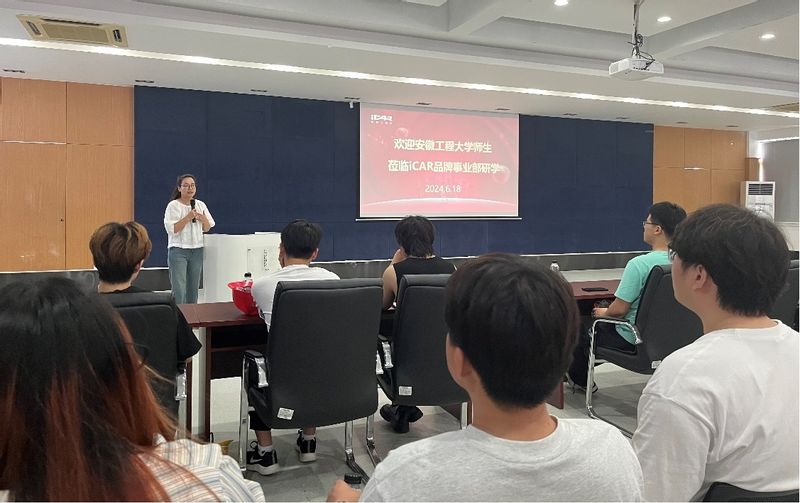 实习期间,师生们参观了奇瑞公司新建的焊接流水线和汽车总装流水线,巨大的车间、高度自动化和智能化的机械设施、有条不紊工作的员工和机器人都给学生们带来了强烈的震撼。工程师为师生们讲解了最新轻量化材料、自动化设备以及信息化管理等先进技术手段在汽车生产制造中的应用情况。奇瑞iCAR品牌事业部的人力资源总监梅兴隆和人力资源经理张瑜为参与实习的师生们带来了一场精彩的专题宣讲,详细介绍了奇瑞iCAR品牌的发展历程、企业文化以及未来的战略规划。宣讲结束后,梅兴隆与同学们进行了互动交流,回答了关于职业发展、行业前景等方面的问题。