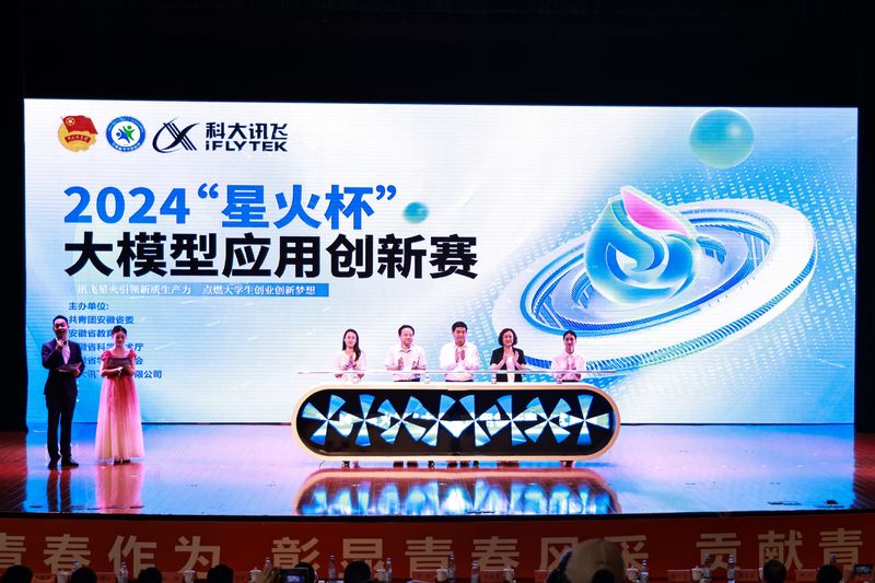 闭幕式上,获奖团队现场做了路演展示,并与投资机构代表、创业园区代表签订意向合作协议。窦贤琨、周晓芹、王孟忠、徐迎归、杨万里共同启动2024年“星火杯”大模型应用创新赛。苏国红将会旗交还主办单位,窦贤琨将会旗递交下一届承办单位,储德银代表安徽财经大学接旗。