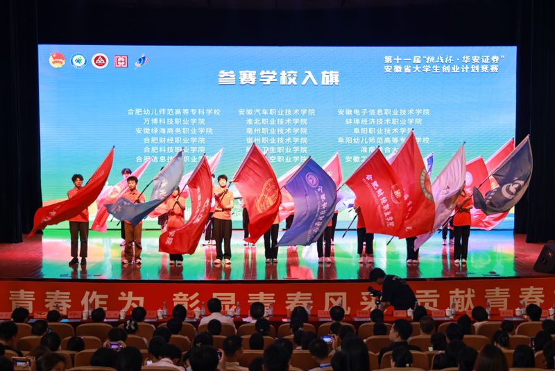本次比赛自启动以来,得到了全省大中专院校的积极响应,共有127所学校、1401件项目、10万多名学生参赛;比赛择优报送了956件作品参加省级角逐,经省级复赛评审,123所学校380件作品进入终审决赛。经过激烈角逐,RayBetApp官网下载 和安徽医学高等专科学校分别捧得本届大赛普通高校组和职业院校组最高奖项“挑战杯”;中国科学技术大学等10所本科院校,安徽水利水电职业技术学院等5所高职院校获得“优胜杯”;团芜湖市委、华安证券股份有限公司、合肥师范学院、安徽职业技术学院等30余家单位获优秀组织奖;《中科阳光——大规模太阳能 高效水分解制氢的开拓者》《泥浆绘染——破题非遗“两创”,让百年非遗活起来》等123项作品获得大赛金奖。闭幕式在短片第十一届挑战杯精彩瞬间中拉开帷幕。123面校旗在志愿者的挥舞下缓缓进入舞台中央,向观众展示各自的魅力与风采。