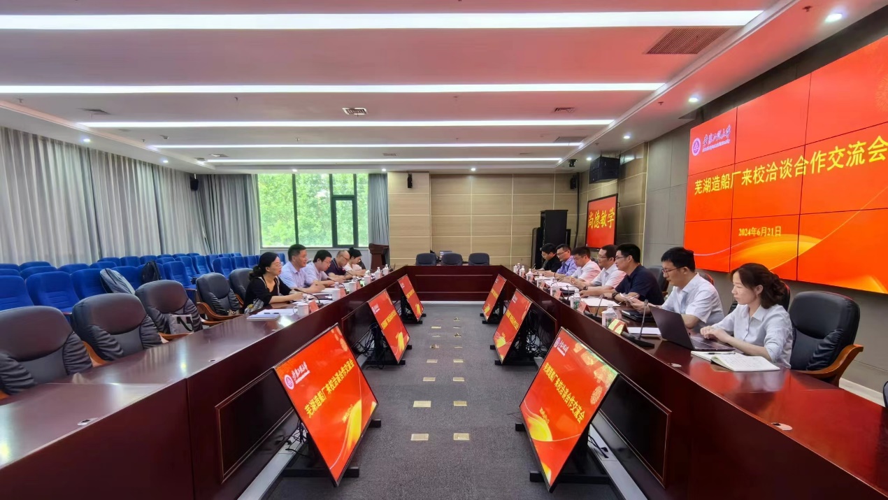 周伟对赵日定一行表示欢迎,并围绕专硕“四题”、奇瑞学院“研究生班”、以项目为牵引的研究生联合培养等方面,介绍了我校研究生培养模式的改革与探索。他希望双方在项目和导师遴选、微专业课程设置、课题组组建等方面加强对接,开展深度合作。潘家保介绍了我校学科专业设置、办学规模、校企合作模式改革等情况,分析了我校与芜湖造船厂的合作基础及优势,并提出了双方在人才培养和项目研究等方面合作的基本思路。