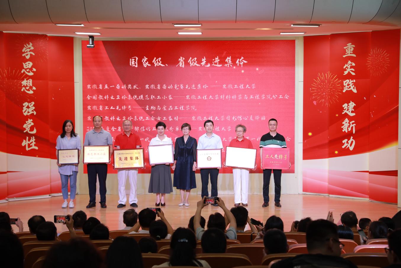 活动现场对安徽省五一劳动奖状、安徽省劳动竞赛先进集体、全国教科文卫体系统模范职工小家、安徽省工人先锋号、安徽省教科文卫体系统工会女工家园、全省教育系统关心下一代工作先进集体、全省离退休干部正能量活动团队、安徽省五一劳动奖章、安徽省五一巾帼标兵、全省关心下一代工作先进工作者、省第六届高校青年教师教学竞赛获奖者以及校级工会系统先进集体和先进个人进行表彰。