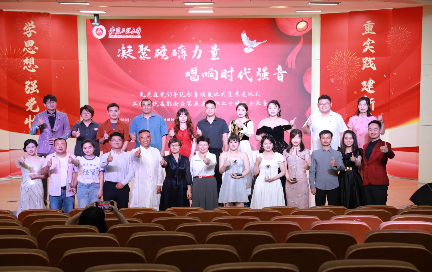 本网讯用歌声致敬党的光辉岁月,用歌声传递青春力量。6月27日,学校在学术报告厅举办“凝聚磅礴力量 唱响时代强音”光荣在党50年纪念章颁发仪式暨荣退仪式 工会系统表彰会暨第五届教职工十佳歌手大赛。校党委副书记苏国红,校党委常委、副校长郑健,校党委常委、宣传部部长孙浩然出席活动。离退休老同志代表、办公室、宣传部、人事处、校工会、校关工委、校团委负责人,各二级党组织负责人、受表彰人员代表以及师生观众300余人参加活动。